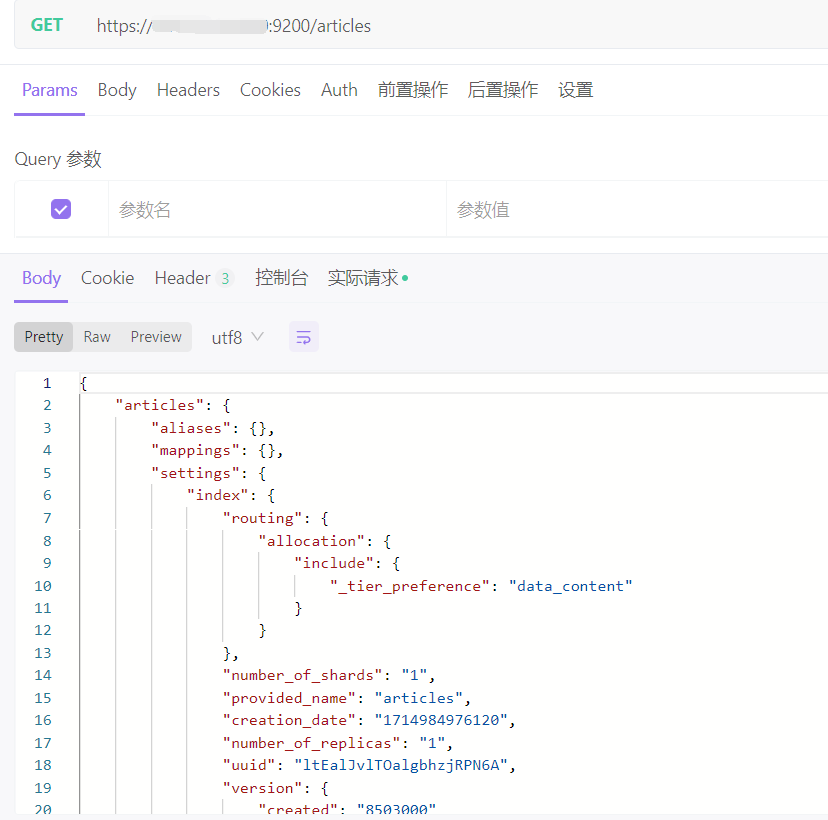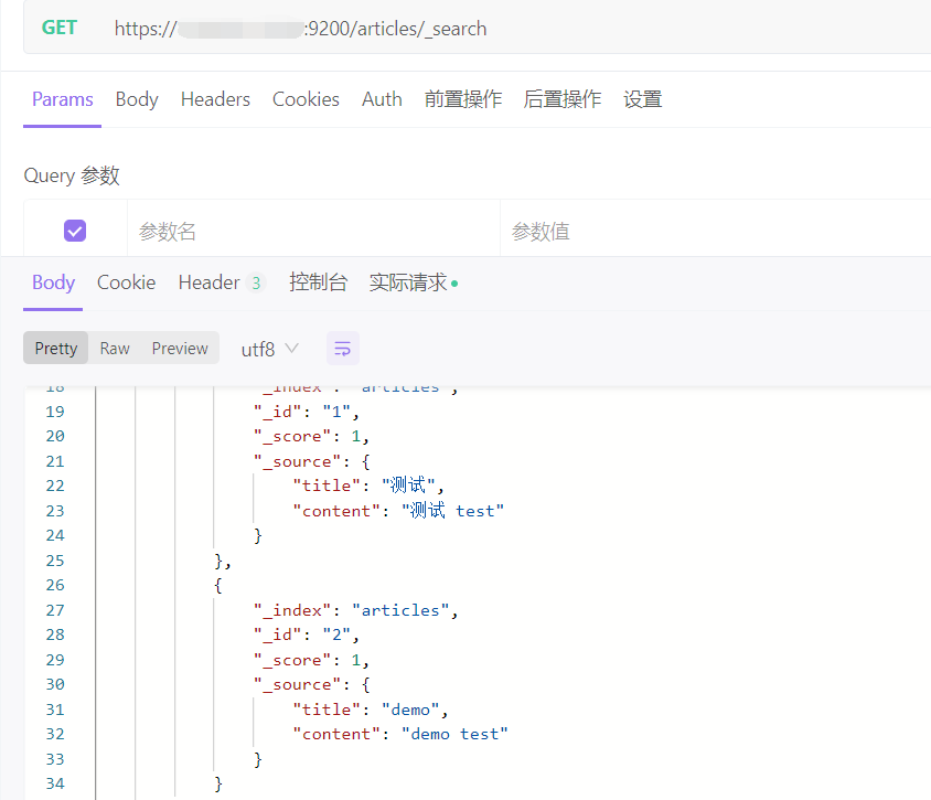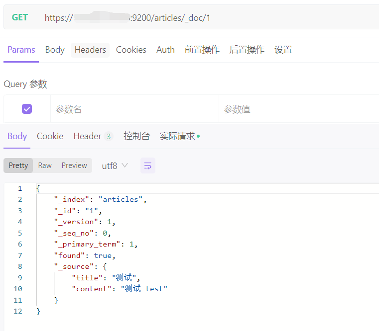 - /indexs/_doc/1 # 查询单个文档GET http://ip:9200/indexs/_search # 查询全部文档