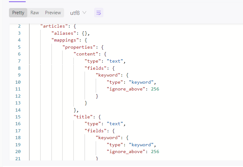 复制代码 这里没有 mapping,在文档写入 Elasticsearch 时,会根据文档字段自动辨认类型,这种机制称之为动态映射