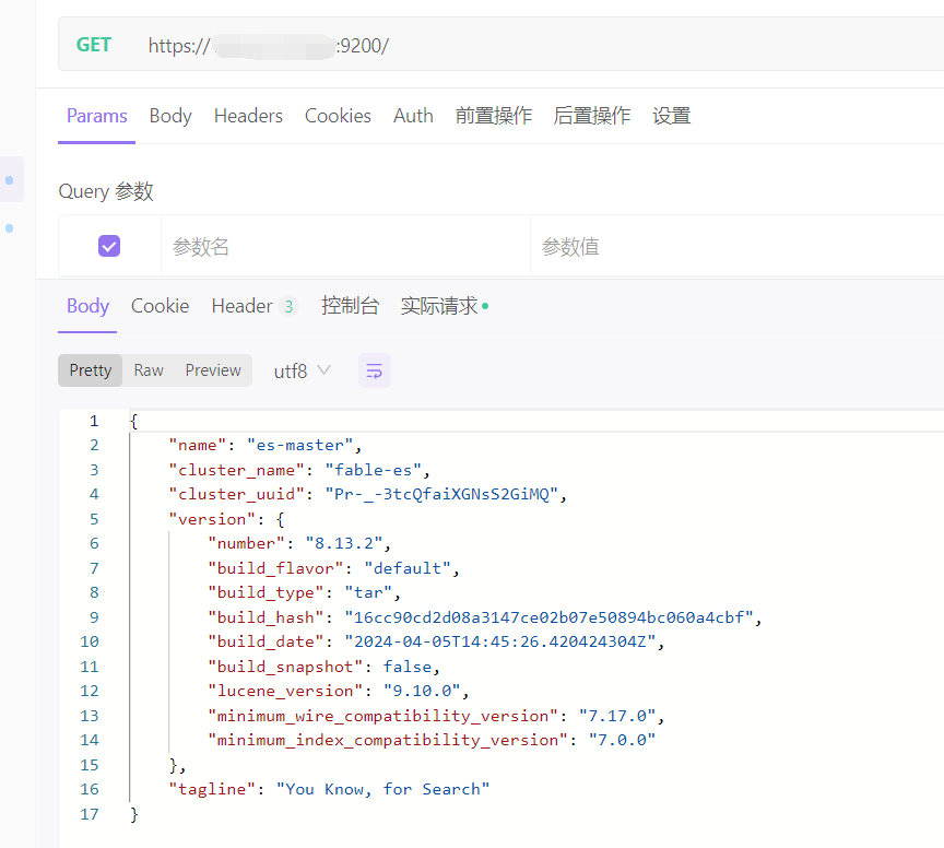 8、测试,访问 https://ip:9200,输入用户名密码,在启动时会输出到控制台或者去日志 文件检察