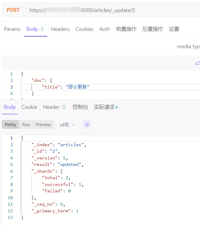 部门更新,不对原始文档进行更新,而是对原始文档对象中的 doc 属性中的指定属性更新