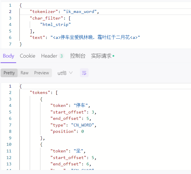 分词器描述分词对象结果standard标准分析器是默认的分析器,假如没有指定,则使用该分析器。它提供了基于文法的标记化(基于 Unicode 文本分割算法,如 Unicode 标准附件 # 29 所规定) ,并且对大多数语言都有用。The 2 QUICK Brown-Foxes jumped over the lazy dog’s bone.[ the, 2, quick, brown, foxes, jumped, over, the, lazy, dog’s, bone ]simple简单分析器将文本分解为任何非字母字符的标记,如数字、空格、连字符和撇号、放弃非字母字符,并将大写字母更改为小写字母。The 2 QUICK Brown-Foxes jumped over the lazy dog’s bone.[ the, quick, brown, foxes, jumped, over, the, lazy, dog, s, bone ]whitespace空格分析器在碰到空白字符时将文本分解为术语The 2 QUICK Brown-Foxes jumped over the lazy dog’s bone.[ The, 2, QUICK, Brown-Foxes, jumped, over, the, lazy, dog’s, bone. ]stop停止分析器与简单分析器相同,但增长了删除停止字的支持。默认使用的是_english_ 停止词。The 2 QUICK Brown-Foxes jumped over the lazy dog’s bone.[ quick, brown, foxes, jumped, over, lazy, dog, s, bone ]keyword不分词,把整个字段当做一个整体返回The 2 QUICK Brown-Foxes jumped over the lazy dog’s bone.[The 2 QUICK Brown-Foxes jumped over the lazy dog’s bone.]pattern模式分析器使用正则表达式将文本拆分为术语。正则表达式应该匹配令牌分隔符,而不是令牌本身。正则表达式默认为w+ (或全部非单词字符)。The 2 QUICK Brown-Foxes jumped over the lazy dog’s bone.[ the, 2, quick, brown, foxes, jumped, over, the, lazy, dog, s, bone ] 扩展,中文分词器