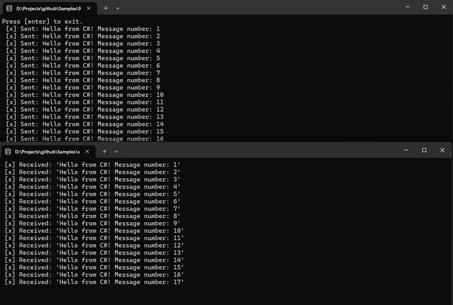 - string message = $"Hello from C#! Message number: {messageCount++}";