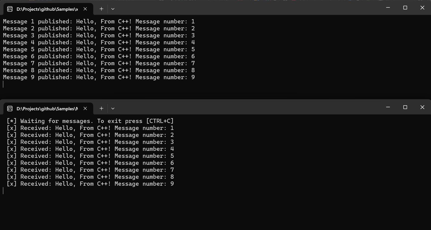- 运行 C++步伐:实行 C++ 步伐,定时发送一条消息到 RabbitMQ 队列。